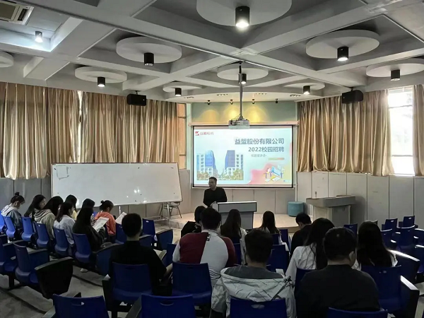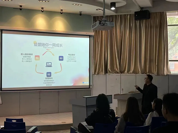 会议伊始,益盟股份有限公司校园招聘人事李老师详细介绍了本次的招聘岗位,员工福利待遇,公司餐饮,住宿环境及入职须知,并为学生们答疑解惑,帮助学生对工作岗位进行深入了解。