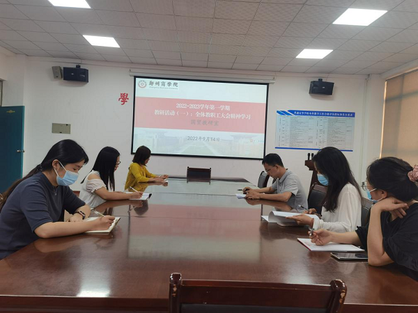 9月8日上午,beat3652022—2023学年第一学期全体教职工大会在图书馆报告厅顺利召开。根据学院工作安排,9月14日下午,国贸教研室以“学习全体教职工大会精神”为主题,召开新学期第一次教研活动。副院长李伟及全体无课教师参会,会议由教研室主任夏元燕主持。
