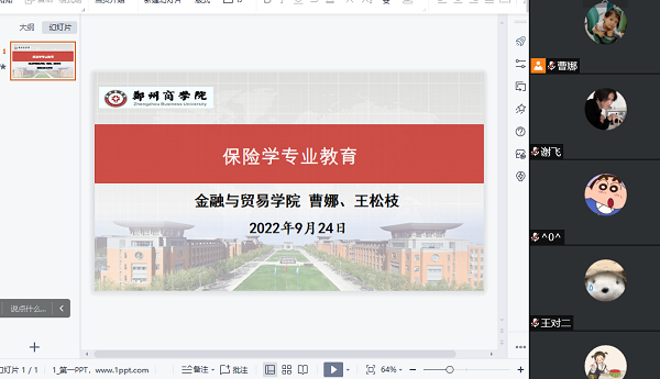 为帮助2022级保险学专业新生快速适应大学学习生活,增强专业认同感,明确学习目标,9月24日晚上通过腾讯会议召开2022级保险学专业新生入学教育,会议由分层分类教研室主任暨保险专业教师王松枝主持,保险经济教研室主任曹娜及全体2022级保险学专业新生参加。