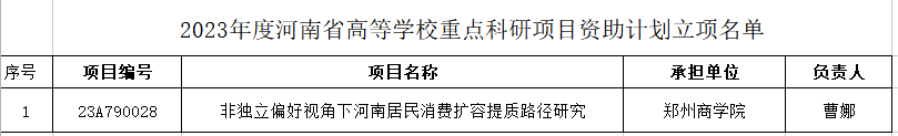 依据《河南省高等学校重点科研项目管理办法(修订)》(教科技〔2019〕234号),现将2023年度河南省高等学校重点科研项目计划(下称“重点项目”)立项名单予以公布(附件),并就有关事项通知如下: