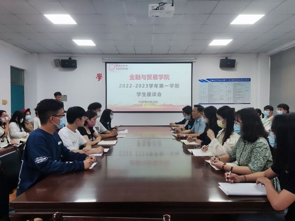 9月30日,我院召开金贸学院2022-2023第一学期学生座谈会,本次座谈会由辅导员赵丹阳主持,我院党委书记吕鹏、全体辅导员及学生代表共同参加。