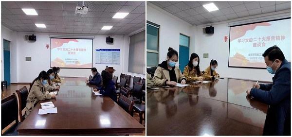在自主学习的基础上,10月21日教工党支部通过腾讯会议集中学习研讨党的二十大会议精神。与会同志纷纷表示作为一名教育工作者,今后仍要持续学习、深刻领会党的二十大会议精神的思想精髓和核心要义,并努力把党的二十大会议精神融入到课堂教学中。同时,始终以二十大会议精神严格要求自己开展各项工作,始终坚持为党育人、为国育才,努力培养担当民族复兴大任的时代新人。