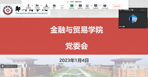 2023年1月4日,金贸学院党委通过腾讯会议召开党委会,就2022年度领导干部民主生活会和第八届高校廉洁教育系列活动进行统一部署安排。