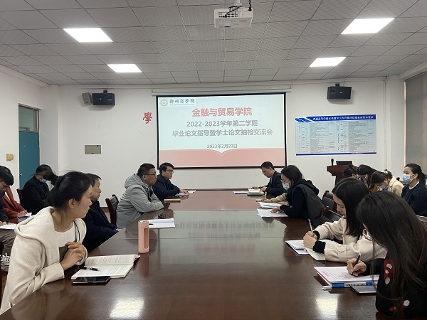 为切实保障本科人才培养质量,助推学校内涵式发展,2月23日下午,我院在金贸学院会议室召开了毕业论文指导暨学士论文抽检交流会。会议由论文专项工作负责人张莉老师主持,院长杨山峰、副院长李伟、全体无课教师参加了此次会议。
