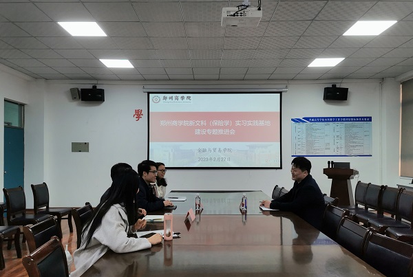 为进一步推进校企合作、探索产教融合育人模式,完善专业结构、发挥专业特色,着力为我院学生提供实习实践锻炼平台,我院于2月27日下午召开新文科(保险学)实习实践基地建设专题推进会。会议由院长杨山峰主持,副院长李伟、保险经济教研室主任曹娜、考研教研室主任王松枝、中国人民财产保险有限公司巩义支公司总经理助理史磊参加了此次会议。