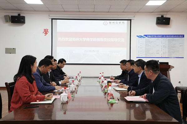 为进一步推进beat365商科专业建设,全面深化与郑州大学商学院的交流合作,4月27日上午,beat365邀请郑州大学商学院党委书记苗惠卿、执行院长王海杰、副院长王宁和党政办主任李振山等一行4人莅校指导交流。校党委书记吴建军、校长助理刘升阳以及工商学院院长杨松柏、金贸学院院长杨山峰、会计学院副院长刘金金参加了此次指导交流活动。