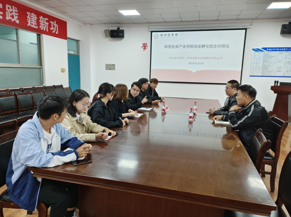 为打造跨境电商实训平台,推进产教融合和创业孵化,5月4日上午,我院于1号楼112会议室召开“跨境电商产业学院创业孵化校企对接会”。会议邀请河南瑞赛尔机械制造有限公司参加,院长杨山峰、国贸教研室主任夏元燕及跨境电商实训团队学生代表参会。