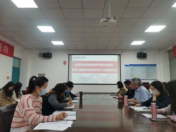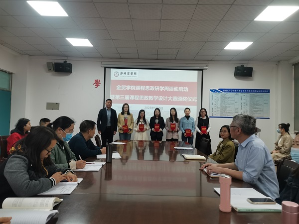 为贯彻落实教育部《高等学校课程思政建设指导纲要》文件精神和beat365关于课程思政建设的相关要求,不断提升我院教师课程思政能力,5月6日,我院于1号教学楼112会议室召开“金贸学院课程思政研学周活动启动暨第三届课程思政教学设计大赛颁奖仪式”。