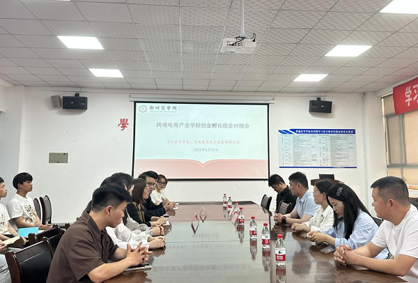 为加强高校人才培养工作与地方经济社会发展的密切联系,5月12日,我院于1号楼112会议室召开跨境电商产业学院创业孵化校企对接会,会议邀请河南鼎龙电力设备有限公司董事长尚汴京、总经理康林林参加,院长杨山峰、国贸教研室主任夏元燕及跨境电商实训团队学生代表参会。
