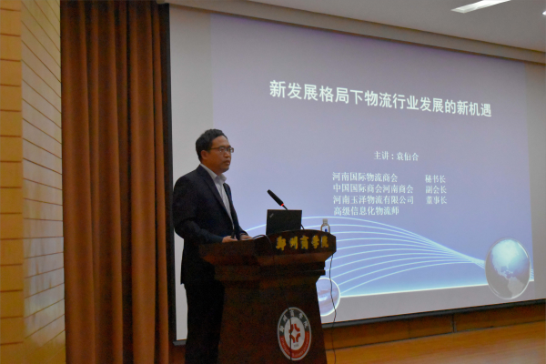 为进一步拓展我院物流管理、跨境电子商务、国际经济与贸易等专业师生的国际视野,了解新发展格局下物流行业发展的新机遇,6月1日,我院特邀请河南国际商会物流专业委员会袁佰合秘书长做专题学术报告。金融与贸易学院院长杨山峰及部分物流管理、跨境电子商务、国际经济与贸易专业师生参加了本次会议。