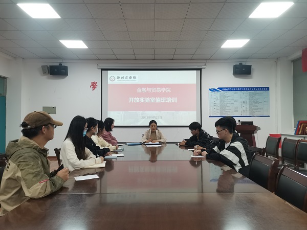 培训会上,贾院长结合我院实验室工作现状,向各位实验室值班人员详细介绍了工作内容,并阐述三项工作职责:一是要务必按时到岗值班,不能延误;二是要做好金贸学院实验室的实验记录本检查工作,更好发挥督促、监督教师认真及时填写实验记录本的职能;三是做好实验室的借用工作,积极帮助有实验室学习需求的同学,协调开门工作。最后,贾院长对各位实验室值班人员表示感谢,感谢他们对学院实验室工作的支持和贡献,希望接下来能够更好的做好实验室值班工作。
