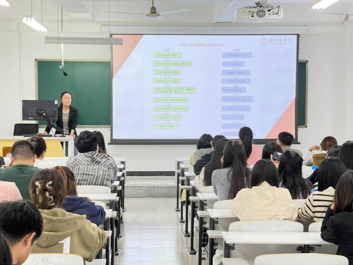 会上辅导员老师首先为同学们介绍了关于实习实训的各个步骤,结合实际,分别从实习目的、实习安排、实习任务、实习要求等多方面对本次实习实训进行解读,让同学们可以更加清晰的认识到实习的一个过程,以及在实习中可能遇到的困难,并且贴心的给出了解决方案。其次辅导员老师就实习实训材料要求,通过PPT课件展示给同学们进行了系统的讲解,向同学们强调了其重要性,毕业实习是人才培养中的重要一环,是学校与工作岗位之间的重要连接点,也是毕业生走向社会的至关重要的一步,因此实习资料的完整性、准确性至为重要。最后,辅导员老师就实习的纪律与要求、实习安全与管理等进行解读。并鼓励同学们要不畏难、不惧责,学院始终是大家坚实的后盾,帮助大家排忧解难。