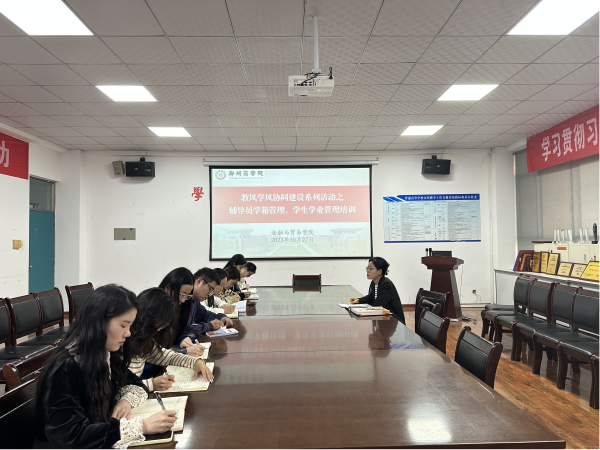 为进一步推进我院教风学风协同建设,提升辅导员业务水平,增强教师与辅导员育人合力。10月27日上午,我院于1号教学楼112会议室召开了“教风学风协同建设系列活动之辅导员学籍管理、学生学业管理专题培训”,我院全体辅导员参加此次会议,会议由教学干事王文珂老师主持。