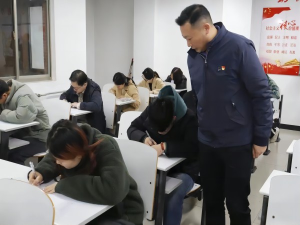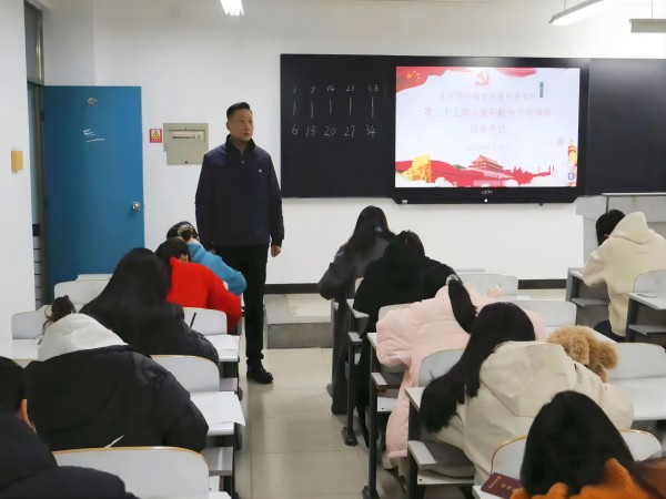 为进一步提升入党积极分子培训班学员学习成效,检验第三十七期入党积极分子培训班学员学习效果,根据校党委工作安排,11月14日晚,beat365举行了第三十七期入党积极分子培训班结业考试,我院全体入党积极分子于1号教学楼209、210教室进行考试,我院党委书记吕鹏、团委书记吴森担任巡考。