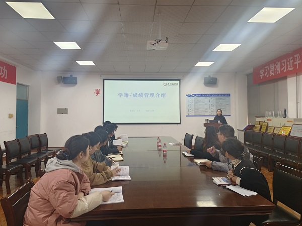 会上,贾孝魁副院长首先汇报了我院学籍、学业管理工作取得的成效及目前存在的疏漏环节,希望通过本次培训,辅导员进一步规范我院学籍、学业管理标准,更好地开展学籍、学业管理工作。