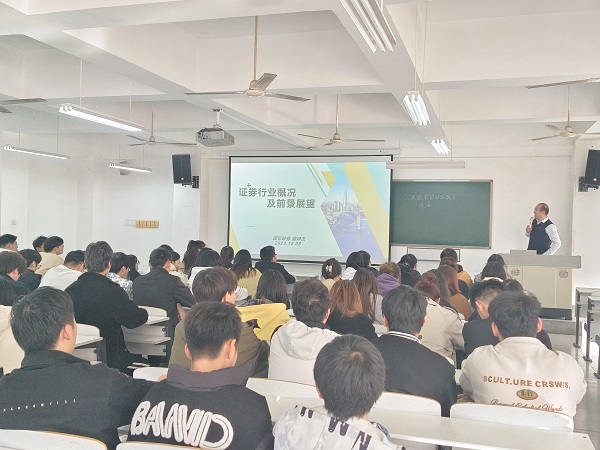12月8日,我院邀请国元证券郑州棉纺东路营业部徐坤杰经理在2号楼301教室开展专题讲座,为同学们讲解证券行业的岗位设置和发展前景。讲座结束后同学们纷纷表示受益匪浅,更加深入地了解专业前景的同时也明确了自己未来的发展方向。