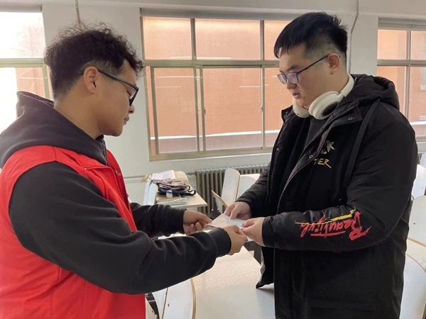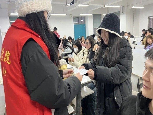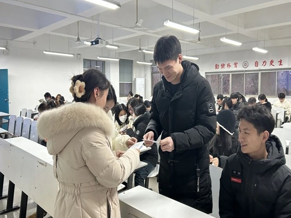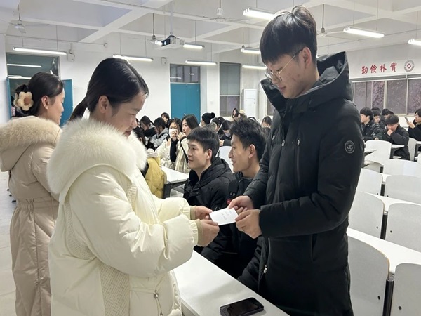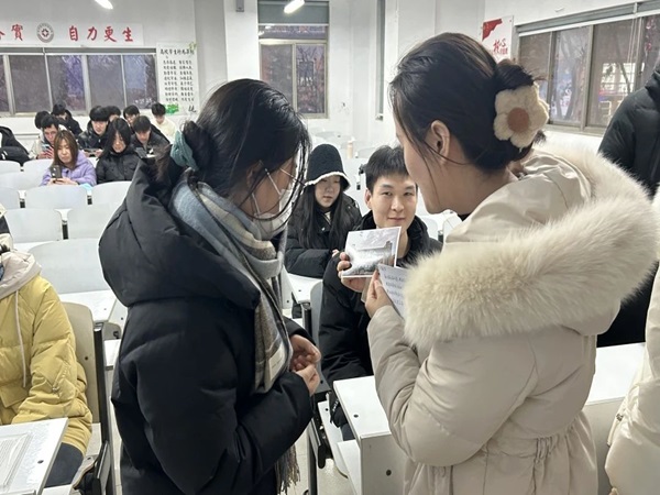 活动现场气氛热烈,各位老师将考研明信片发放到同学手中,亲切地询问了同学们的备考情况,并叮嘱他们要保持积极良好的学习状态,鼓励同学们稳住心态、全力以赴。