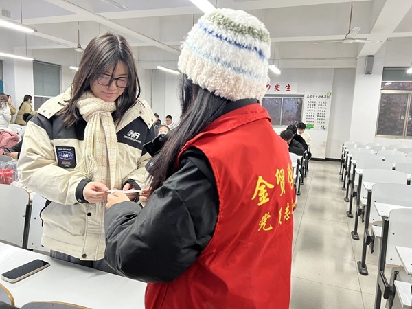 全国硕士研究生招生考试已进入倒计时,为帮助学院考研学子缓解备考压力,调整备考状态,鼓舞考研士气,坚定考研信心,金贸学院学生第二、第三党支部集中开展了“研途送温暖,相伴考研路”考研慰问活动。学生党支部书记曹君秀、赵丹阳,辅导员老师任哲蘅出席本次活动,为考研学子加油打气,送上温暖祝福和亲切关怀。