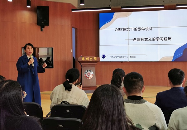 为进一步推动一流课程建设,提升课程建设水平,增强教师教学设计能力。3月8日下午,我院特邀请河南工程学院杨凌云教授在学生事务中心3楼众创空间路演厅做题为《OBE理念下的教学设计——创造有意义的学习经历》的专题报告,我院院长梁鹏、副院长贾孝魁及全体无课教师参加本次报告会,报告会由贾孝魁副院长主持。