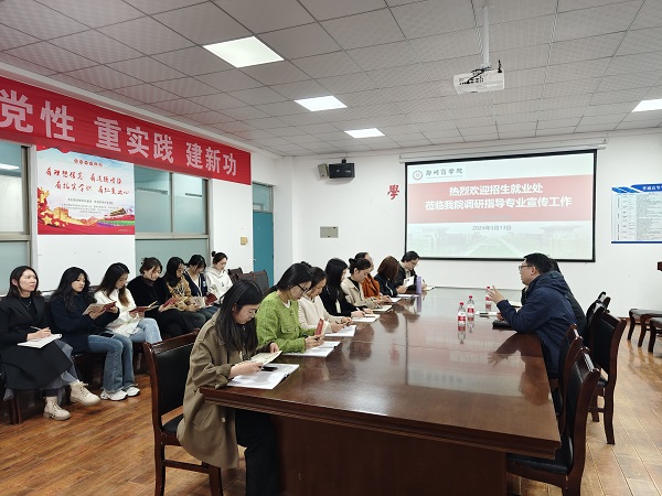 为进一步明确专业招生宣传工作的方向和目标,创新宣传亮点,3月13日下午,招生就业处李兆洋老师一行莅临我院调研专业宣传工作,我院院长梁鹏、各教研室主任、各专业教师及学生代言人参加本次会议,会议由梁鹏院长主持。
