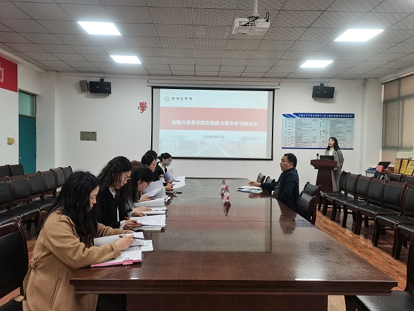 会上,公司代表谭艳、金世宪详细介绍了OBE理念下国际经济与贸易、投资学、金融科技等专业实践教学体系构建路径,运用教学案例阐释实践教学实施效果与改进;同时介绍了校企共建课程的模式,并结合我院国际经济与贸易、数字经济专业的相关课程进行了深入剖析,展现了校企共建课程在学科竞赛、课程改革等方面的重要作用。随后,与会老师围绕校企共建课程的课时安排、企业参与模式及实施时间等问题展开讨论。面对老师们提出的问题,两位公司代表耐心细致地一一解答,为校企共建课程的顺利推进提供了有力支持。最后,贾孝魁副院长进行总结发言,她鼓励各位老师积极探索校企共建课程的切入点,将企业的实际需求与学院的教学资源相结合,实现资源共享、优势互补,深入理解实践教学的内涵,做到理实合一。