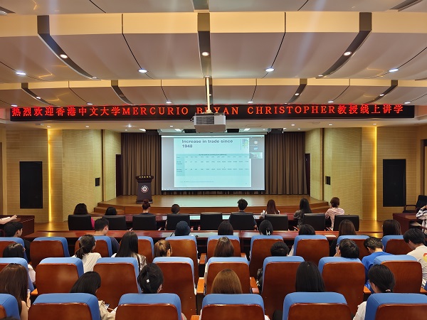 为进一步拓宽学生国际视野,培养具有国际视野和创新能力的高素质人才,4月25日,beat365特邀香港中文大学法学教授Mercurio Bryan Christopher为学生们讲授《国际贸易系统的重塑:从稳定到动荡》课程。此次课程在图书馆五楼报告厅开讲,采取全英讲授的形式,由国际交流合作处胡胜阳老师主持,金贸学院刘恒老师作为助教进行课堂辅助教学,金贸学院近200名学生参加。