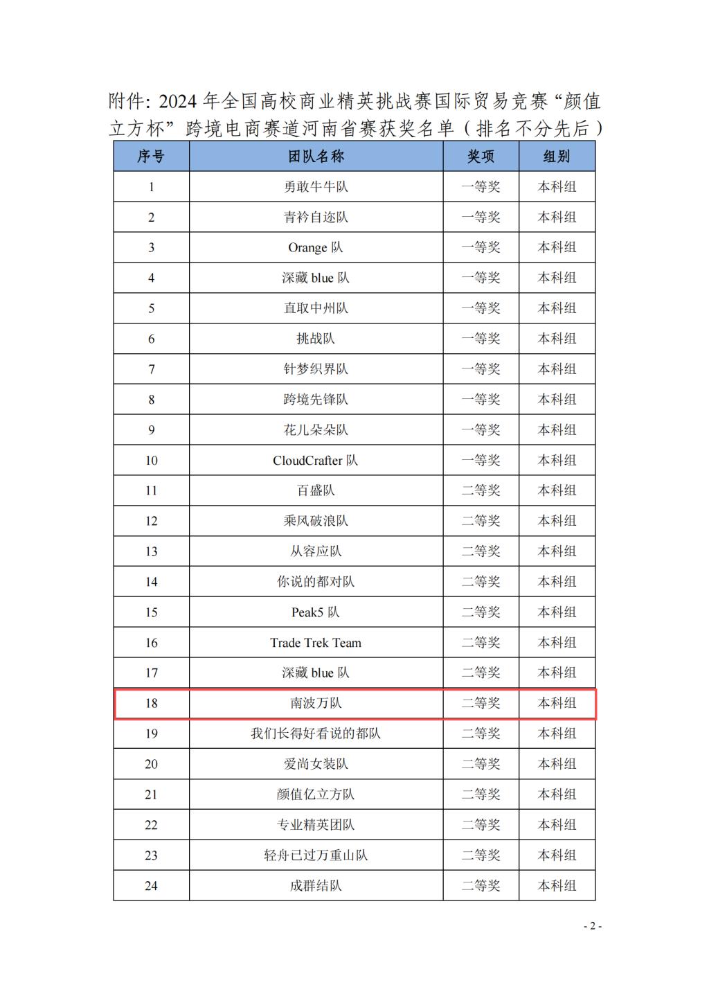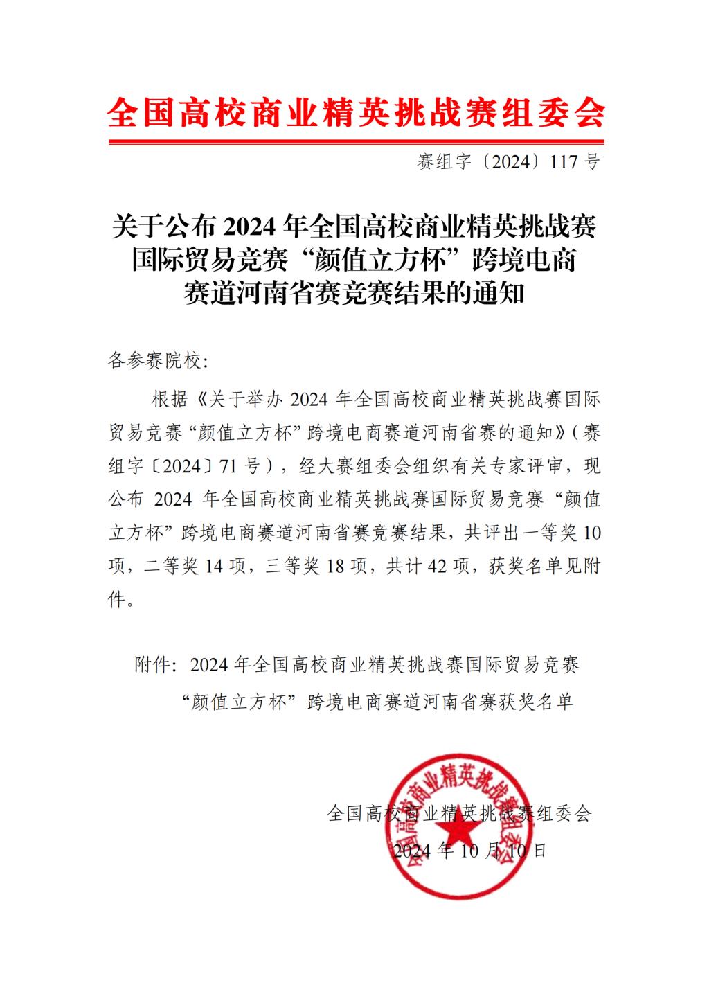 2024年10月10日,由中国国际贸易促进委员会商业行业委员会、中国国际商会商业行业商会和中国商业经济学会联合主办的2024年全国高校商业精英挑战赛国际贸易竞赛“颜值立方杯”跨境电商赛道河南省赛圆满举办,此类比赛作为河南省高等教育学会《关于公布2024年河南省高等学校大学生学科竞赛省级竞赛项目的通知》中国家级竞赛河南赛区竞赛项目,含金量极高。我院参赛队“南波万队”荣获“颜值立方杯”跨境电商赛道河南省赛二等奖并成功入围全国总决赛。