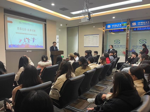 11月21日-22日,学生在潘丹丹、胡盈盈和王柳雅三位老师的带领下赴中国民生银行偃师支行进行交流研学。中国民生银行偃师支行经理张旭瑞带领同学们参观并讲解银行的日常运营环境、银行的内部结构和功能区域,让学生更好地理解银行的整体运作流程。同时张经理结合自身工作经验向同学们介绍银行各职能岗位、工作职责及职业发展路径,使得学生可以更深刻地理解银行这份职业,更好地规划自己的职业道路,明确未来的发展方向。