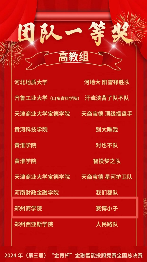 本次竞赛旨在通过模拟真实的金融市场环境,考察参赛选手的金融素养、专业技能和团队协作能力,为金融行业培养具备创新思维和实践能力的未来之星。我院参赛学子在比赛中始终保持冷静、沉着应对,展现出了坚韧不拔、勇于拼搏的精神风貌。他们的出色表现赢得了组织方的高度评价和广泛赞誉,也为我院赢得了荣誉和尊重。