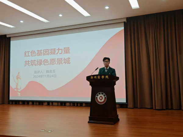 为传承红色基因,凝聚奋进力量,引导青年投身绿色发展建设,进一步增强我院青年对红色基因的传承意识与对绿色发展的使命担当。11月24日,我院于图书馆五楼多媒体报告厅开展红色基因凝聚力量,共筑绿色愿景城——“薪火”宣讲团第三讲。我院行政秘书兼团委书记吴森,辅导员李如晓、邢璐、张松影参加。