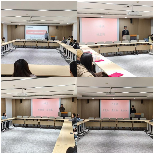 11月29日,经过激烈的角逐,评选出获奖选手,并在32号楼一站式团体活动中心进行颁奖仪式。其中姚孟闯荣获一等奖,由赵丹阳老师为其颁奖;陈明威和吕荣鑫荣获二等奖,由张宁老师为其颁奖;孟夏如、贾凯阳、吴金阳荣获三等奖,由曹君秀老师为其颁奖。