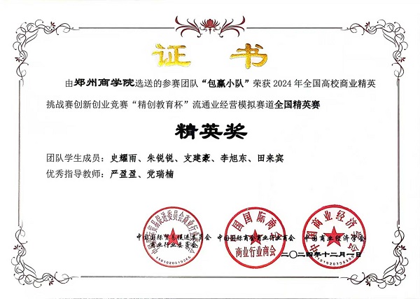 11月29日-12月1日,由中国国际贸易促进委员会商业行业委员会、中国国际商会商业行业商会和中国商业经济学会联合主办的2024年全国高校商业精英挑战赛创新创业竞赛“精创教育杯”流通业经营模拟赛道精英赛在潍坊理工学院圆满落幕。我院物流管理教研室主任严盈盈和党瑞楠老师带领22级物流管理学生史耀雨、支建豪等所在的“包赢小队”因出色的成绩在全国总决赛中脱颖而出,被选拔参加全国精英赛。经过激烈的角逐,在全国精英赛比拼中斩获“2024年全国高校商业精英挑战赛创新创业竞赛精创教育杯流通业经营模拟全国精英赛”精英奖和“2025年内地与港澳地区数字经济创新创业竞赛”入围奖。同时beat365荣获最佳院校组织奖。