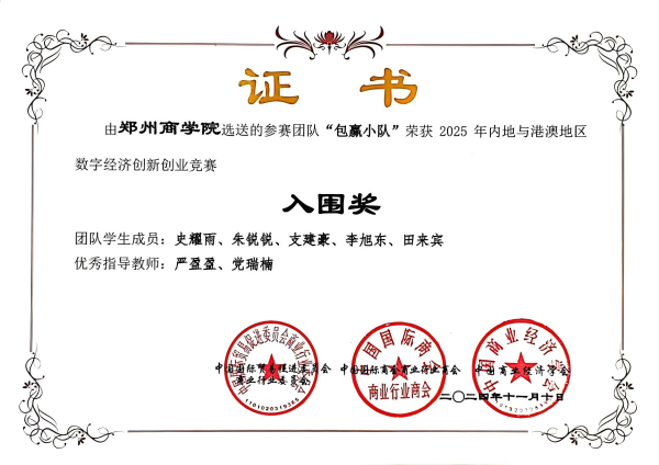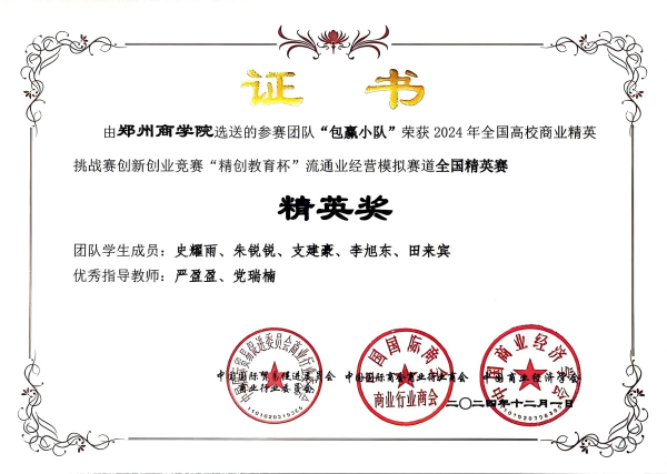 11月29日-12月1日,由中国国际贸易促进委员会商业行业委员会、中国国际商会商业行业商会和中国商业经济学会联合主办的2024年全国高校商业精英挑战赛创新创业竞赛“精创教育杯”流通业经营模拟赛道精英赛在潍坊理工学院圆满落幕。我院物流管理教研室主任严盈盈和党瑞楠老师带领22级物流管理学生史耀雨、支建豪等所在的“包赢小队”因出色的成绩在全国总决赛中脱颖而出,被选拔参加全国精英赛。经过激烈的角逐,在全国精英赛比拼中斩获“2024年全国高校商业精英挑战赛创新创业竞赛精创教育杯流通业经营模拟全国精英赛”精英奖和“2025年内地与港澳地区数字经济创新创业竞赛”入围奖。同时beat365荣获最佳院校组织奖。