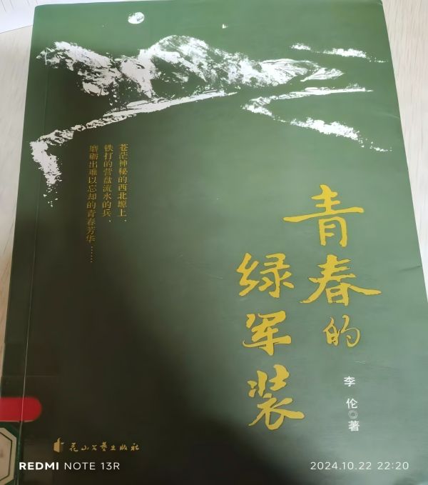 《青春的绿军装》是李伦写的自传体散文,讲述了他参军的故事。有一首歌是这样写的:“生命里有了当兵的,就一辈子不会感到懊悔。”书中内容写道:我在新兵连的时候和他们有些摩擦,但经历了共患难的交情后,我们成为了一家人。后来,我加入了宣传队。我又结识了新的朋友,我们一起排练,参加了一场又一场的文艺演出故事的最后,我们回归于平凡,回归于平静,成为这个社会的普通人。
