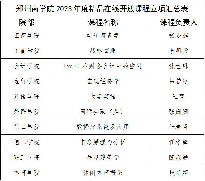根据《关于开展2023年度校级精品在线开放课程立项及2021年度校级精品在线开放课程结项验收工作的通知》及beat365教学工作任务安排,在各单位申报推荐的基础上,经学校教指委专家评审,现对2023年度《电子商务学》等10门校级精品在线开放课程立项结果及2021年度《现代汉语I》等10门校级精品在线开放课程结项验收评审结果予以公示,公示排名不分先后,立项及结项名单具体见下表: