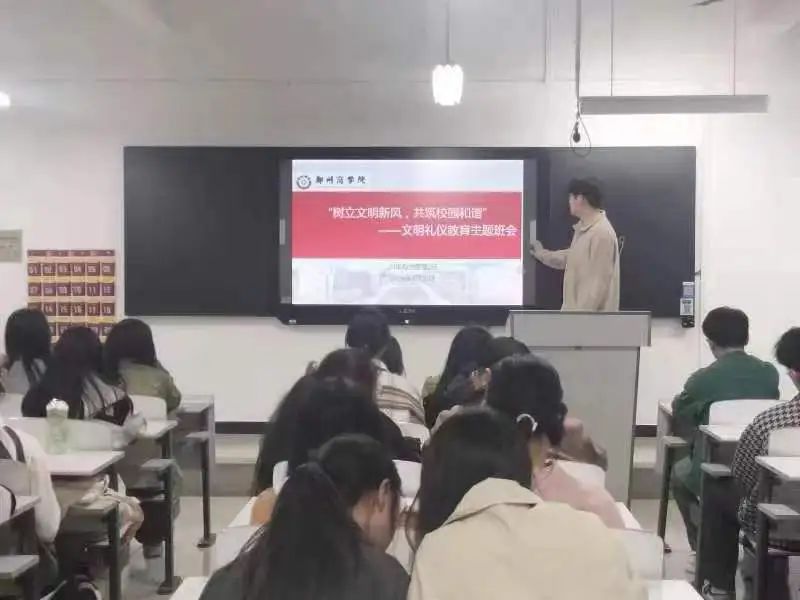 本次班会还强调了文明礼仪对个人成长以及社会发展的重要性,使同学们深刻认识到,文明礼仪不仅是培养良好品德、塑造健全人格的关键因素之一,也是建立和谐人际关系、促进社会进步的基础。最后辅导员老师呼吁同学们成为“学礼、知礼、懂礼、用礼”的新时代青年,从当下做起、从眼前做起。
