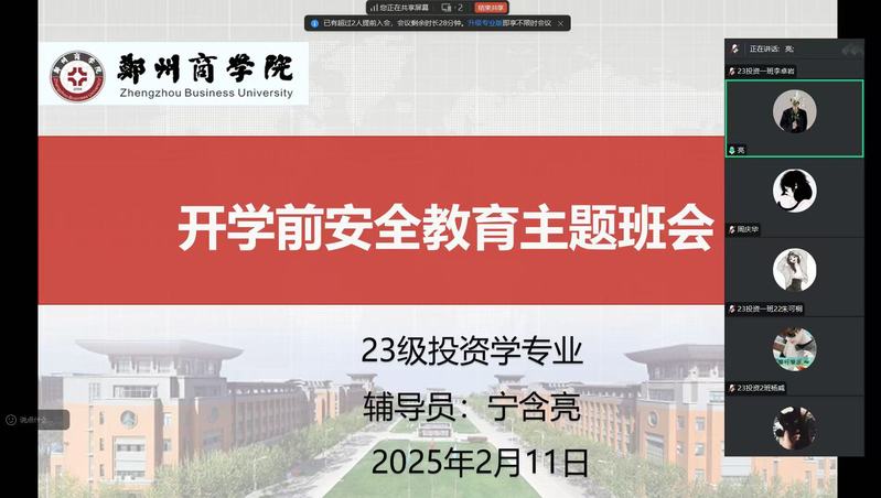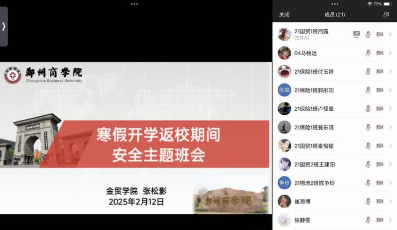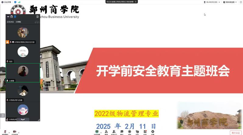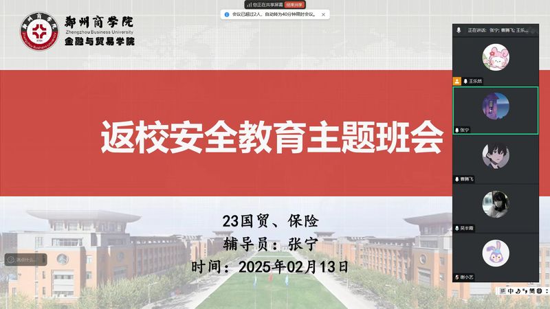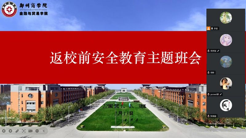 为保障学生顺利安全返校,会后我院各辅导员老师积极召开班级开学前安全教育主题班会。