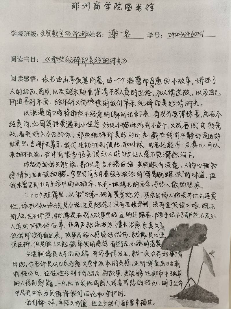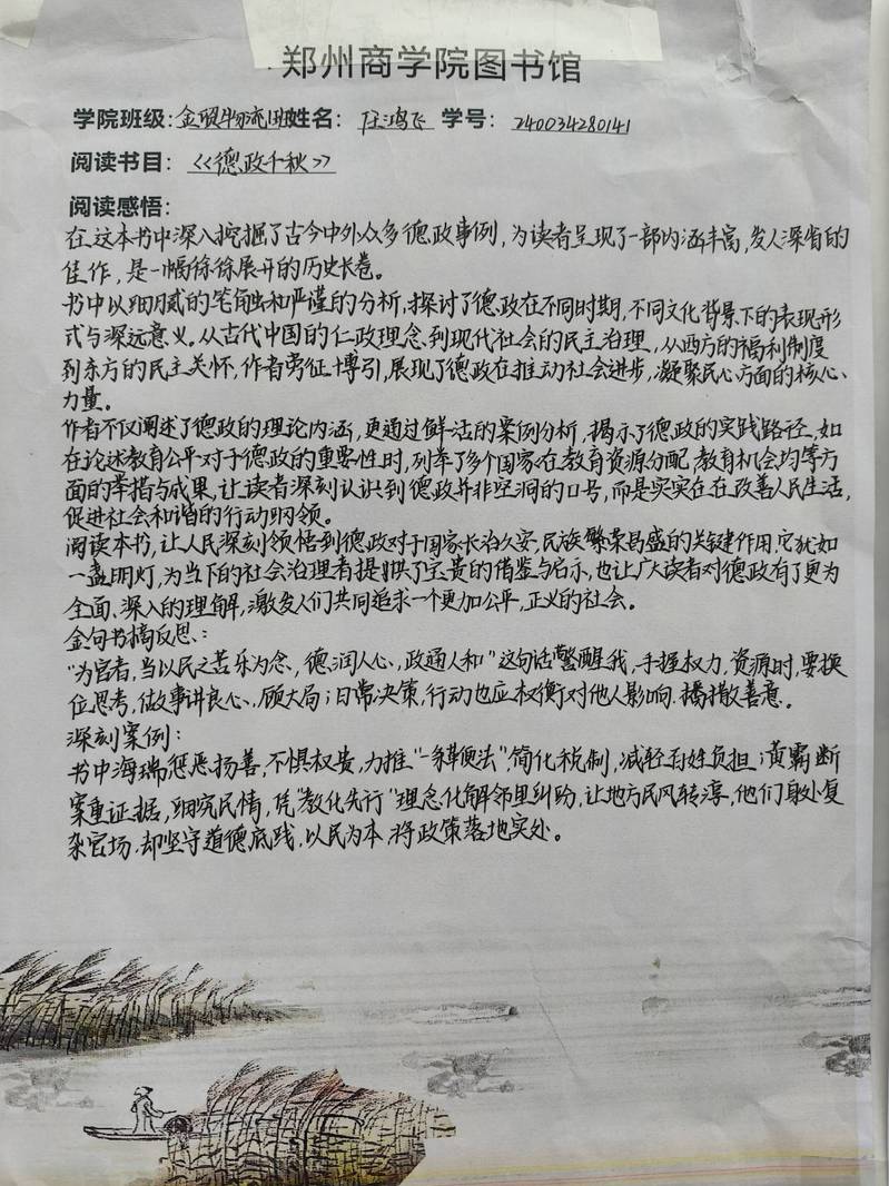 “书评”发挥着重要作用,不但帮助同学们加深对读物内容的理解,还促进同学们的专业成长,营造了浓厚的读书氛围,提高同学们的综合素养。