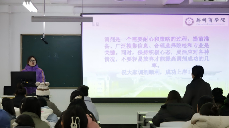 宋珂琦学姐也为同学们提供了宝贵的复试准备的具体步骤,首先复习专业课同时要注意仪表整洁其次要准备好英语的自我介绍,最后她提出要多学习面试技巧保持一个良好自信的面貌。在最后宋珂琦学姐还为有考研英语方面疑惑的同学提供了具体的学习方法。