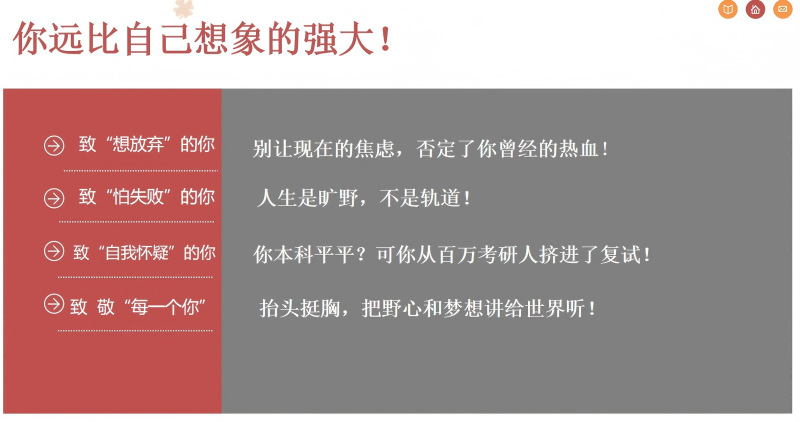 会上,张倩倩老师进行复试动员。一是引导考研学子调整心态,接纳焦虑,破除滤镜,轻装上阵,拒绝卑微,真诚取胜。二是为学生讲解不同类型题目答题思路,增强专业储备。三是为大家加油鼓劲,鼓励考研学子心怀憧憬,脚踏实地,不负韶华。