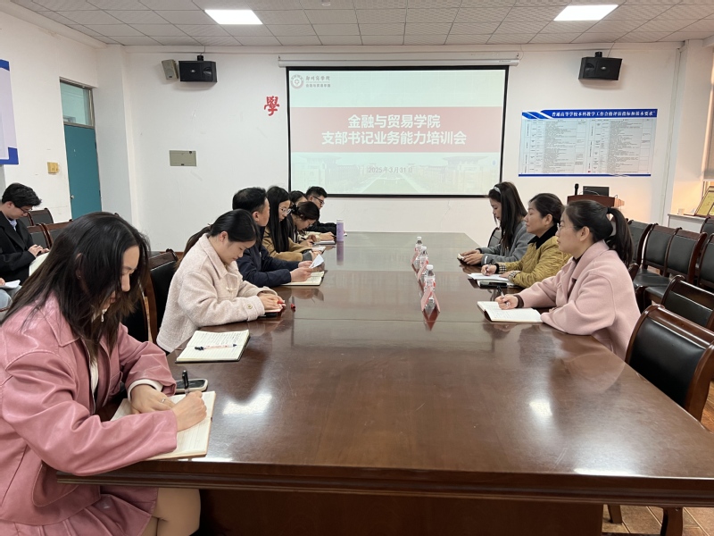 3 月 31 日下午,校党委组织召开党支部书记业务能力培训会。校党委组织部副部长孟晗,金贸学院党委书记吕鹏,党委办公室孙佳星老师,外语学院组织委员刘宁老师,以及金贸学院全体党支部书记参加此次会议。