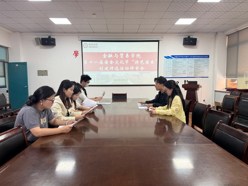 5月7日,金贸学院于1号楼112会议室开展第十一届宿舍文化节“特色宿舍”创建评选活动评审会。在会议上辅导员们通过对每个宿舍的详细记录以及对每个宿舍的检查情况进行了公平、公正、公开的评选活动,在满足评选基本条件的基础上,根据宿舍实际情况,评选出卫生整洁宿舍、学风优良宿舍、文化书香宿舍、运动活力宿舍、 党员标兵宿舍。