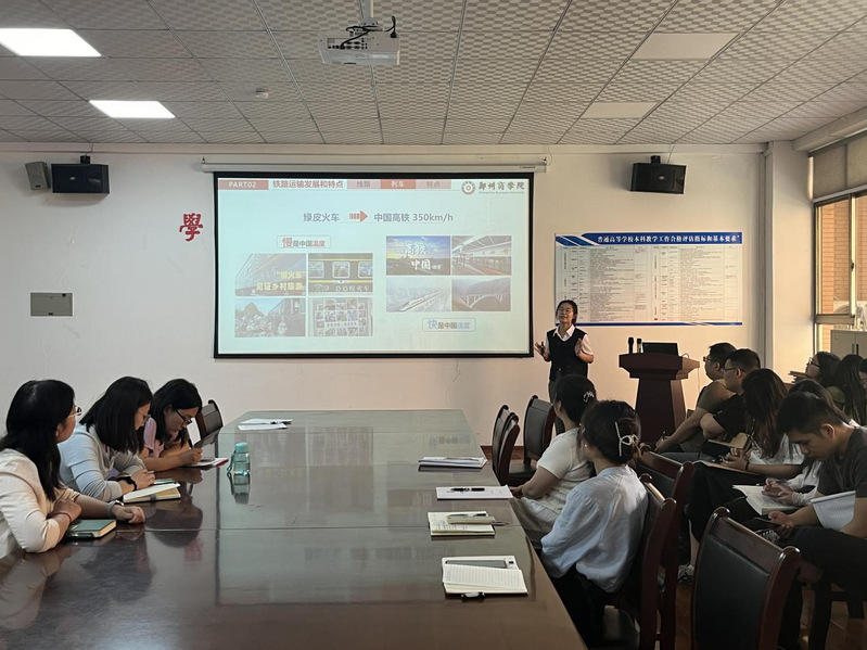 首先,薛老师以革命老区百色市的芒果运输为例,展示了铁路运输在助力乡村振兴、促进地方经济发展中的积极作用;接着,从铁路运输的发展和特点出发,详细介绍了绿皮火车到中国高铁的飞速进步;最后,特别强调了中欧班列在促进“一带一路”沿线国家经贸合作、推动河南等内陆地区扩大对外开放中的关键作用。她通过讲述铁路建设者的奋斗故事、分析铁路运输对国家发展战略的支撑作用等方式,引导参会教师注重挖掘专业课程中的思政资源,结合行业特点和社会热点,设计具有针对性和吸引力的教学活动。同时也激发参会教师思考如何在教学中融入思政教育,培养学生的职业观、价值观和社会责任感。