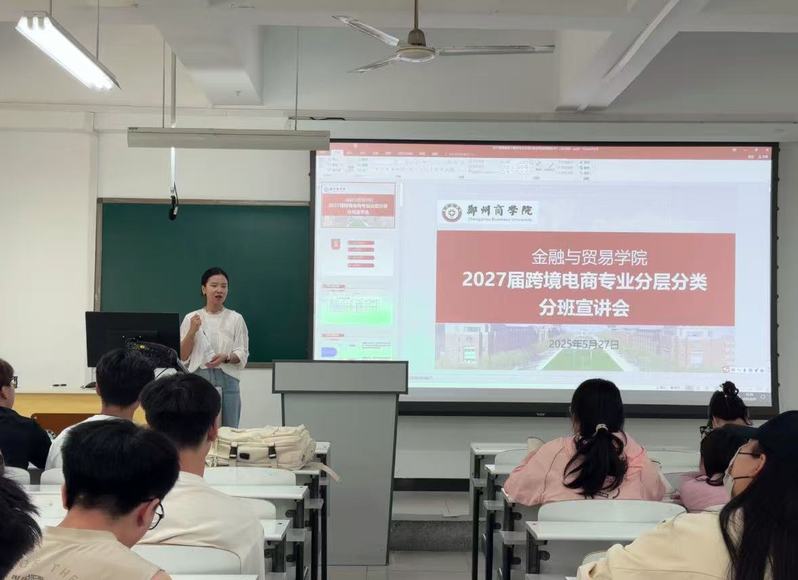 为满足学生个性化发展需求,优化教学资源配置,提升考研率与就业竞争力,5月27日,我院跨境电子商务专业召开分层分类教学宣讲会。跨境电子商务教研室主任李国艳老师及2023级跨境电子商务专业全体学生参加宣讲会,宣讲会由李国艳老师主讲。