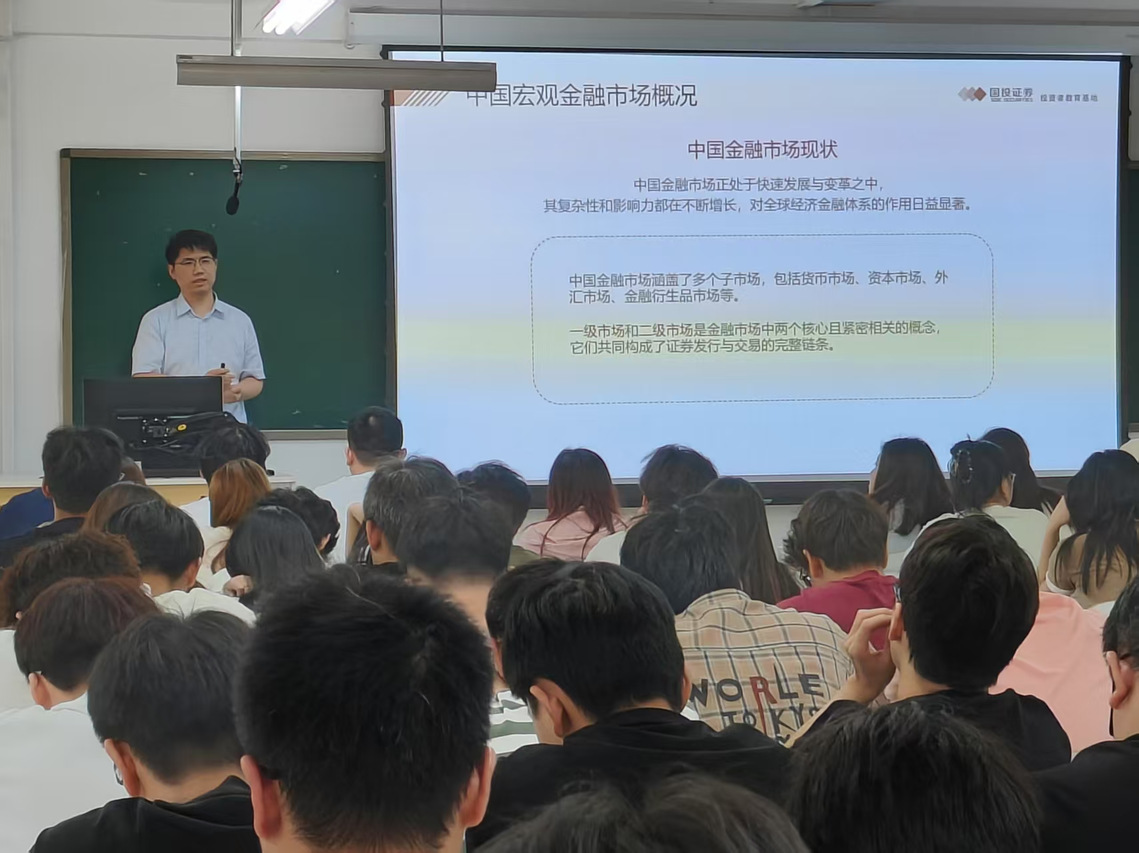 在宣讲中,国投证券专业人士以详实数据与案例,对中国宏观金融市场进行全景式解读,剖析市场发展脉络与机遇。针对大学生群体,聚焦“如何做好经济规划”,从储蓄、投资、消费等维度给出实用建议,助力同学们培养科学理财思维。在借贷防诈专题,结合典型金融诈骗案例,揭露常见套路,警示潜在风险,提升同学们的安全防范意识。