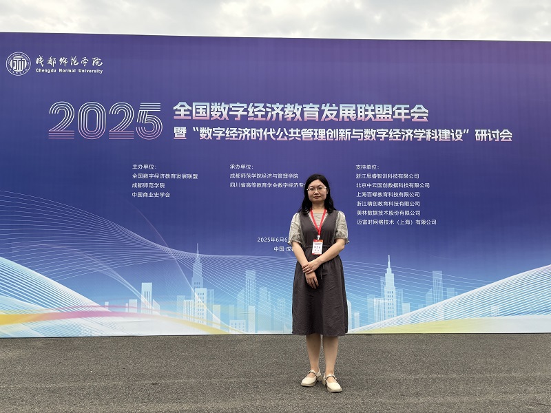 2025年6月7日,我院保险经济教研室主任杨艳老师赴成都参加由全国数字经济教育发展联盟、成都师范学院、中国商业史学会主办的2025年全国数字经济教育发展联盟年会暨“数字经济时代公共管理创新与数字经济学科建设”研讨会,此次论坛会在成都师范学院温江校区举办。