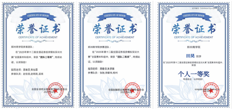 2025年3月27日至5月30日,由全国金融职业教育教学指导委员会主办的第十二届全国证券投资模拟实训大赛圆满举行。该赛事在我国高等教育领域颇具影响力,专业覆盖全面,校企合作紧密,含金量十足。此次大赛竞争激烈,团队赛本科组吸引了4276支队伍踊跃参与,个人赛本科组则有24184名选手同场竞技。我院朱梦娣、原春芬等老师带领投资、保险等专业学生组织49支队伍参加团队赛和54人参加个人赛,在经过激烈的角逐后,共收获团队一等奖1项,二等奖3项,三等奖8项;个人一等奖4项,二等奖4项,三等奖5项。