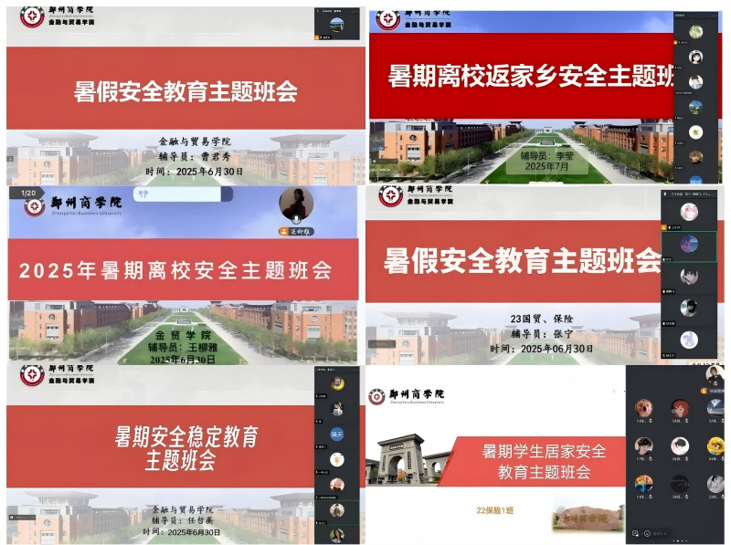 为切实加强学生安全教育与管理工作,提高学生安全意识,确保学生度过一个安全、愉快的暑假,6月30日——7月1日,金融与贸易学院组织召开暑假第一次安全教育线上班会。此次班会由各班辅导员主持,学院全体学生参加。