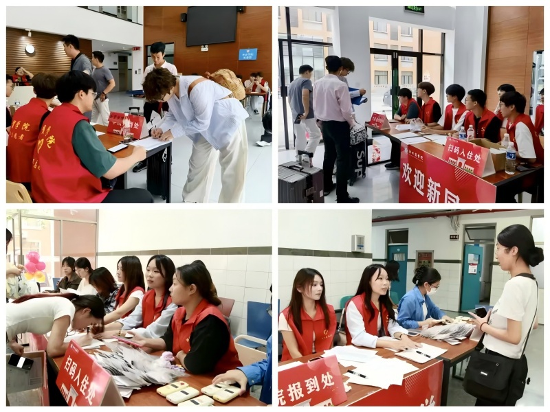 校园内,往返穿梭的摆渡车持续为新生搬运大件行李,志愿者们一边帮忙拿行李,一边热情介绍校园生活小tips;宿舍区内,各岗位流程清晰高效,辅导员助理协助完成线上报到、发放钥匙物资、解答各类疑问,一切井然有序。