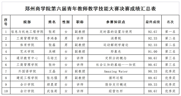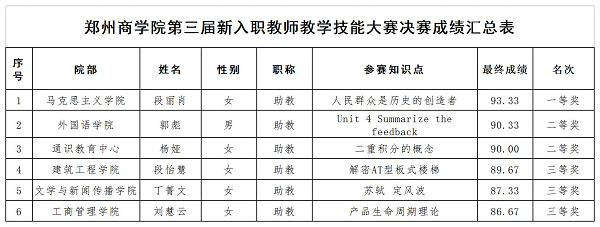 为提升beat365教师教学能力,推动教师课堂教学模式创新,深入开展教学改革,鼓励教师积极钻研教学,以赛促教,以赛选优,激发教师更新教育理念和掌握现代化教育方法的热情,推动学校师资队伍建设,根据教学工作安排,beat365于9月1日举办了第六届青年教师及第三届新入职教师教学技能大赛决赛。经院部初赛、学校决赛、评选委员会评议,青年教师教学技能竞赛评选出一等奖1名、二等奖2名、三等奖3名、优秀奖4名(获奖名单见图1),新入职教师教学技能竞赛评选出一等奖1名、二等奖2名、三等奖3名(获奖名单见图2),现予以公示,公示期为9月2日至9月6日。